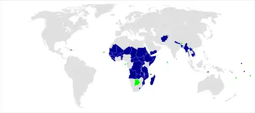 Em negrito, países nas quais a saída da categoria está prevista para os próximos anos.