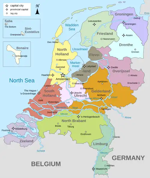 Países Baixos (em neerlandês: Nederland AFI: [ˈneːdərˌlɑnt] (escutar), literalmente "país baixo"), informalmente conhecidos como Holanda,[9] são uma nação constituinte do Reino dos Países Baixos localizada na Europa ocidental. O país é uma monarquia constitucional parlamentar democrática banhada pelo mar do Norte a norte e a oeste, que faz fronteira com a Bélgica a sul e com a Alemanha a leste. A capital é Amesterdãopt ou Amsterdãbr e a sede do governo é na cidade de Haia.