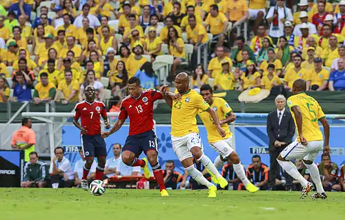 | Pablo Armero atuando pela Seleção Colombiana na Copa do Mundo de 2014. | ||