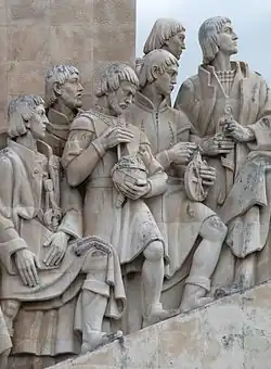Para além da estátua principal do Infante Dom Henrique, o Navegador, segurando um modelo de uma caravela, de ambos os lados das rampas do monumento há um total de 32 figuras da história dos descobrimentos, especificamente (da esquerda para a direita):[9]