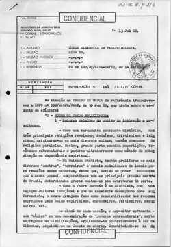 - ↑ INFORMACAO N° 148/A2/IV COMAR : CURSO ELEMENTAR DE PARAPSICOLOGIA 13-07-1982 Centro de Informações de Segurança da Aeronáutica, Wikidata Q61893008
