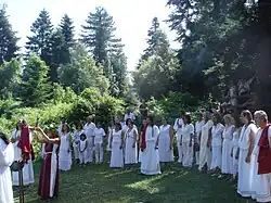 Uma cerimônia neopagã em Avebury, Reino Unido, que ocorreu durante o Beltane, em 2005