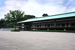 O salão de audiências principal era a parte central do palácio. Era o maior edifício na composição. Os convidados eram recebidos lá para eventos públicos. O espaço possuía mais de 223 tsubo ou aproximadamente 737,25 m². No interior, o teto decorado no estilo tradicional japonês, enquanto o chão possuía parquetes. A cobertura era similar a do Palácio Imperial em Quioto, mas era coberta por placas de cobre (à prova de fogo) ao invés de telhas de cipreste japonês.