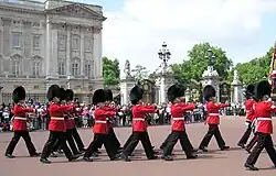 O Palácio de Buckingham é um dos principais símbolos britânicos. Este palácio, além de ser a residência da monarquia britânica, é também uma galeria de arte e uma atracção turística. Por trás das grades douradas e dos portões, que foram feitos pela Corporação de Bromsgrove,[15] e da famosa fachada de Webb, a qual foi descrita como "a ideia que todas as pessoas têm de um palácio", o numeroso pessoal empregado pela Casa Real mantém a monarquia constitucional britânica em funcionamento.