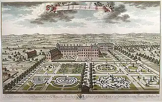 Durante setenta anos, o Palácio de Kensington foi a residência favorita dos monarcas britânicos, embora a sede oficial da corte permanecesse no St. James's Palace o que, de resto, se mantém até à actualidade, embora este palácio não seja, de facto, a residência real em Londres desde o século XVII. Em 1694, a rainha Maria II morreu de varíola no palácio, aos trinta e dois anos de idade. Em 1702, Guilherme III caíu dum cavalo em Hampton Court e foi trazido para Kensington, onde morreu pouco tempo depois. Depois da morte de Guilherme III, o palácio tornou-se na residência da Rainha Ana. Em 1704, Sir John Vanbrugh desenhou a Orangery (estufa para cultivo de laranjas em climas frios) para aquela monarca e um magnífico parterre barroco de 30 acres (121.000 m²) foi disposto por Henry Wise, cujos viveiros ficavam na vizinhança, em Brompton.