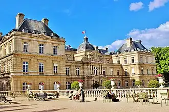 ![]() Fachada do Palácio do Luxemburgo vista de um dos jardins. | |