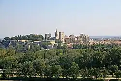 Além disso, a importância das feiras de Champagne até ao fim do século XIII e a perenidade da feira de Beaucaire haviam feito de Avinhão e do seu rochedo uma etapa comercial obrigatória.[33] A presença papal iria devolver-lhe um brilho que estava em vias de perder e o conflito entre a Inglaterra e a França uma importância política que não poderia ser alcançada por Roma, demasiado afastada desses dois reinos.