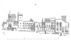 - ↑ «O Pátio de Honra e Guia do Palais des Papes, op. cit., p. 21.». Arquivado do original em 1 de setembro de 2009