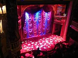 - Palco elizabetano: Tem a característica de um palco misto. É um espaço fechado, retangular, com uma grande ampliação de proscênio (em formato retangular ou circular). O público o circunda por três lados: Retangular, circular ou Misto