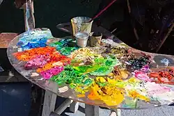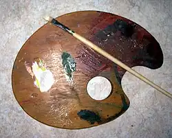 Paleta é uma chapa de madeira, louça ou plástico sobre a qual os pintores dispõem e combinam as tintas enquanto pintam.[1] Tem um orifício para o polegar e também um recuo ou reentrância ao lado do orifício para segurar a paleta com os dedos indicador e médio. A maioria das paletas são brancas para eliminar diferenças nas cores entre a paleta e a tela.[2]