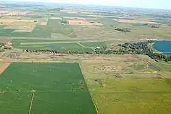 Imagem aérea dos pampas ao redor de um autódromo em Junín, Argentina.