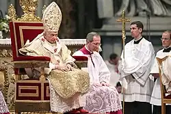 - ↑ «Benedict XVI attends Consistory in St. Peter's Basilica». Rome Reports. 14 de fevereiro de 2015. Consultado em 22 de abril de 2017
