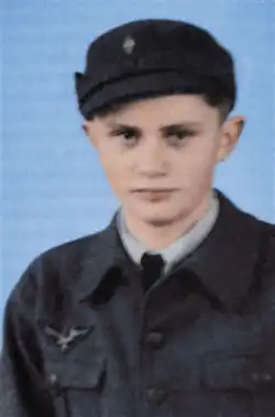 Em 1943, com dezesseis anos, foi incorporado, pelo alistamento obrigatório, no Exército Alemão, numa divisão da Wehrmacht encarregada da bateria de defesa antiaérea da fábrica da BMW nos arredores de Munique. Mais tarde, esteve em Unterförhring e Gilching, ao norte do lago Ammer. Foi dispensado em 10 de setembro de 1944 do serviço na bateria antiaérea de Gilching e poucos dias depois foi enviado a um campo de trabalho em Burgenland, na fronteira da Áustria com a Hungria e a Checoslováquia para realizar trabalhos forçados, daí sendo enviado ao quartel de infantaria em Traustein, de onde desertou pouco tempo depois.[30]