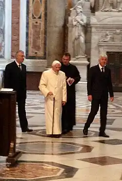 - ↑ «CNS STORY: Retired Pope Benedict XVI celebrates Mass with former doctoral students». Consultado em 30 de agosto de 2014. Arquivado do original em 3 de setembro de 2014