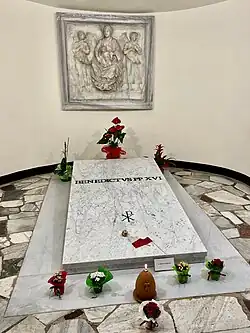 - ↑ «Public now can see Benedict's tomb at St. Peter's Basilica». AP NEWS (em inglês). 8 de janeiro de 2023. Consultado em 9 de janeiro de 2023