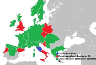 Inocêncio também interferiu política e religiosamente em todos os outros países da Europa, de forma muito mais frequente e eficaz que seus antecessores ou sucessores.[41] O papa era suserano e senhor feudal da Inglaterra, Portugal, Aragão, Dinamarca, Polônia, Boêmia, Hungria, Dalmácia e de vários outros pequenos territórios. Dessa forma, surgiu efetivamente uma importante "feudalidade papal" construída sobre a forte autoridade moral de Inocêncio.[3]