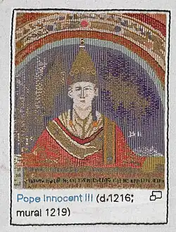 ![]() Afresco de Inocêncio no mosteiro beneditino de Subiaco, Lácio, criado em torno de 1219. | |