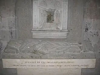 - ↑ Verso 134 do Canto XII da parte III "O Paraíso, de A Divina Comédia. Na nota aos versos 133-135, o tradutor Vasco Graça Moura refere: "...Pedro Hispano, médico e teólogo português que foi papa sob o nome de João XXI (m. 1277). Os doze livros referidos são as Summulae logicales. «É o único papa que D. põe do Paraíso - como autor, não como papa» (Risset)." In Dante Alighieri, A Divina Comédia, tradução de Vasco Graça Moura, ilustrações de Gustave Doré, Círculo de Leitores, outubro de 1998, ISBN 972-42-1875-9, pag. 488.