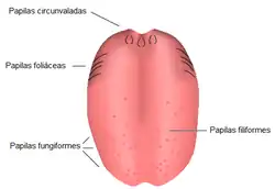 As papilas gustativas presentes principalmente na língua e também em algumas partes do nariz, mas também, em menor número, no céu da boca, na garganta e no esófago, são responsáveis pelo reconhecimento do sabor das diferentes substâncias. São aglomerados de células recetoras do paladar, também conhecidas como células gustativas.[1] São elevações do epitélio oral e nasal e da lâmina própria da língua. Existem seis tipos de papilas, com diferentes formas e funções: papilas fungiformes, papilas foliáceas, papilas circunvaladas, papilas filiformes, circunvolaformes, filgaformes. Estas são classificadas de acordo com as suas formas.