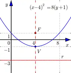 que é a equação padrão da parábola de vértice e reta diretriz .