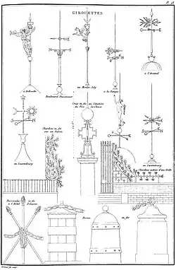Gravura de 1826 mostrando alguns modelos de para-raios. |