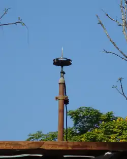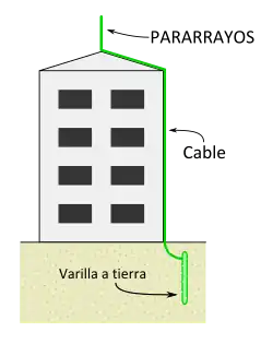 Comumente conhecido com para-raioAO 1990, o sistema de proteção contra descargas atmosféricas (SPDA) do tipo Franklin, é uma haste de metal, normalmente feita de cobre, alumínio, aço inoxidável ou aço galvanizado destinado a dar proteção aos edifícios dirigindo as descargas elétricas atmosféricas, raios, para o solo através de cabos de pequena resistência elétrica e hastes de aterramento. Como o raio tende a atingir o ponto mais alto de uma área, o para-raios é instalado no topo do prédio.[1][2]