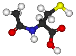 A acetilcisteína (também chamada de N-acetilcisteína ou NAC) funciona como antídoto, reduzindo a toxicidade do paracetamol, ao fornecer grupos sulfidrilos (principalmente na forma de glutationa, do qual é um precursor) que neutralizam o metabólito tóxico NAPQI, que assim não pode provocar danos nos hepatócitos e pode ser seguramente excretado. A NAC é comercializada como um suplemento dietético nos Estados Unidos da América.