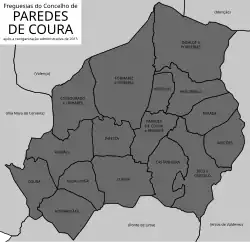 Desde a reorganização administrativa de 2012/2013,[5] o município de Paredes de Coura é composto por 16 freguesias:[5]