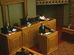 Primeiros-ministros desempenham apenas as funções de chefe de governo. Na imagem, o ex-primeiro-ministro do Luxemburgo, Jean-Claude Juncker, a discursar na Câmara dos Deputados do Luxemburgo.