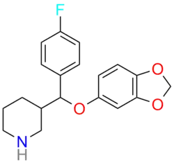 106. Orjales, Aurelio; Mosquera, Ramón; Toledo, Antonio; Pumar, M. Carmen; García, Neftalí; Cortizo, Lourdes; Labeaga, Luis; Innerárity, Ana (2003). «Syntheses and Binding Studies of New [(Aryl)(aryloxy)methyl]piperidine Derivatives and Related Compounds as Potential Antidepressant Drugs with High Affinity for Serotonin (5-HT) and Norepinephrine (NE) Transporters». Journal of Medicinal Chemistry. 46 (25): 5512–5532. ISSN 0022-2623. PMID 14640559. doi:10.1021/jm0309349