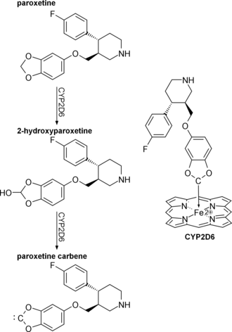 Mecanismo de inibição da paroxetina do CYP2D6.[75]
