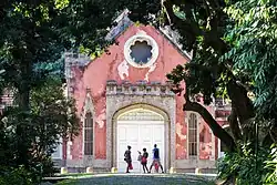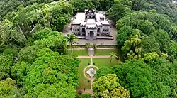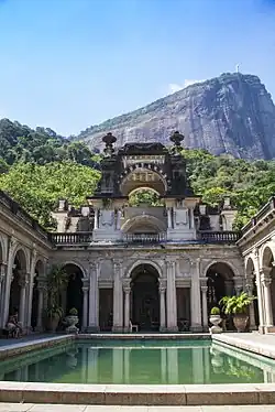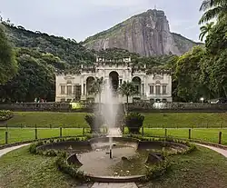 ![]() Imagem do palácio do Parque Lage com o Corcovado e o Cristo Redentor ao fundo. | |