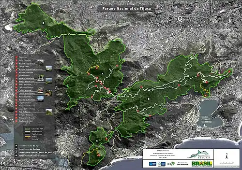 - ↑ «Parque Nacional da Tijuca». Parque da Tijuca. Consultado em 26 de novembro de 2017