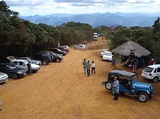 ![]() Vista Sul do Parque Nacional de Caparaó. Fotografia tirada da trilha de acesso ao Pico da Bandeira. À direita e próximo, vê-se o Pico do Calçado, ao fundo aparece a Pedra Menina. | |