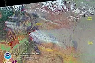 - (em inglês) Yellowstone National Park Wildland Fire Images — Fogos de 1988