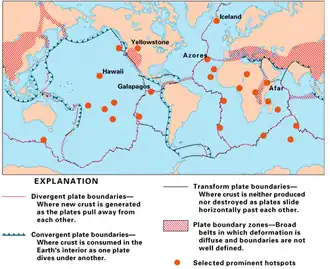 Yellowstone situa-se na ponta nordeste de um acidente geográfico em forma de U que atravessa as montanhas e que actualmente são as planícies do rio Snake. Esta planície em forma curva foi criada na altura em que o continente americano sofria deriva continental e passava por um hotspot ("zona quente") vulcânico existente abaixo da crosta terrestre. Este hotspot estava anteriormente localizado onde é hoje a localidade de Boise, no estado de Idaho. Mas a América do Norte sofreu uma deriva, à velocidade de 45 mm por ano, na direcção sudoeste, que relocalizou o hotspot até ao lugar actual.