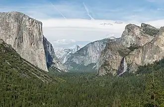 Representando apenas 1% da área do parque, o vale de Yosemite é o ponto que mais turistas recebe. O El Capitan, um proeminente penhasco de granito que se impõe sobre o vale, é um dos mais populares destinos do mundo para os escaladores de rochas, uma vez que oferece diversos percursos com diferentes graus de dificuldade, para além de estar acessível todo o ano. Erguem-se também sobre o vale a Sentinel Dome e a Half Dome, impressionantes cúpulas de granito com 900 e 1 450 metros respectivamente.