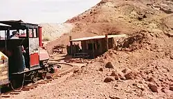 Trem de mina andando em Calico Ghost Town