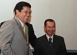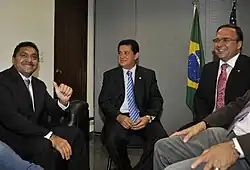 Com 1,3 milhões de votos, Francisco Everardo "Tiririca" se elegeu o deputado mais votado do Brasil em 2010. Na foto, Tiririca se senta com o Ministro Alfredo Nascimento e o líder do PR, Sandro Mabel.