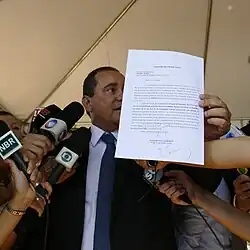 Estamos com uma crise mundial terrível que exige, na nossa opinião, uma pessoa com a experiência do presidente Lula. Não estamos rifando a Dilma. Vamos ficar com ela até o final. A questão é do momento. Lula é a única pessoa capaz hoje, talvez, de fazer uma conciliação nacional.(Manifesto lido pelo líder da bancada do PR na Câmara do Deputados, Bernardo Santana, em abril de 2014)[58]