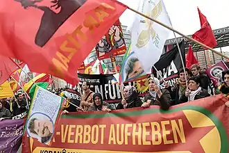 Costantemente as forças policiais alemãs precisam intervir nas manifestações pró-PKK, pois, além de ser proibido o uso de símbolos de organizações terroristas, também é recorrente depredações por parte dos manifestantes.[48][49]
