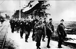 - Exército Iugoslavo[note 3] – em 1º de março de 1945, o Exército de Libertação Nacional foi transformado nas forças armadas regulares da Iugoslávia e renomeado em conformidade.