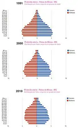- ↑ IBGE. «Portal das Cidades - Patos de Minas». Consultado em 1 de outubro de 2013. Arquivado do original em 30 de abril de 2012