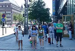 Em contraste, o tráfego de pedestres é oficialmente encorajado em algumas partes da União Europeia e a construção ou separação de rotas de passeio dedicadas recebem uma alta prioridade na maioria dos grandes centros urbanos europeus, frequentemente em associação com melhorias no transporte público. Em Copenhague, a maior área de compras para pedestres no mundo, a Strøget, tem se desenvolvido ao longo dos últimos 40 anos graças principalmente ao trabalho do arquiteto dinamarquês Jan Gehl.