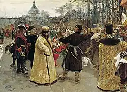 Dois czares, por Ilia Repin, 1900: pintura moderna retratando a Entrada Real dos czares Pedro I e Ivã V.