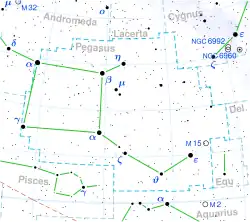 - 1 2 3 Kim Ann Zimmermann (9 de novembro de 2018). «Pegasus Constellation: Facts & Notable Features». Space.com. Consultado em 19 de agosto de 2019