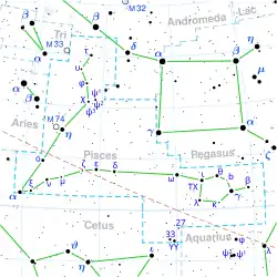 - 1 2 «Pisces Constellation». Constellation Guide. Consultado em 3 de agosto de 2019