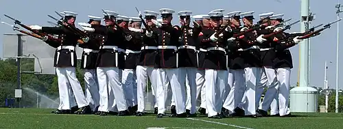 No Corpo de Marines dos Estados Unidos, os pelotões de atiradores são chefiados por um comandante de pelotão, normalmente com o posto de segundo tenente. A função de sargento de pelotão é normalmente inerente a um staff sergeant (segundo-sargento) mas pode ser desempenhada por um terceiro-sargento ou mesmo por um cabo. Os pelotões de atiradores dos Marines normalmente consistem em três esquadras de atiradores de 13 militares — chefiadas por terceiros sargentos — mais o comandante de pelotão, o sargento de pelotão, três socorristas (pertencentes à Marinha dos EUA) e um guia de pelotão (normalmente terceiro-sargento). Cada esquadra divide-se em três equipas de tiro. Já os pelotões de armas são constituídos por uma secção de morteiros de 60 mm, uma secção de assalto com lança-foguetes e uma secção de metralhadoras médias.[2]
