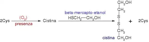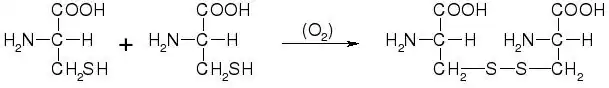 Isto ocorre frequentemente numa proteína, quando se dobra e duas moléculas de cisteína ficam próximas no espaço, gerando uma ponte dissulfureto. A ponte dissulfureto ocorre de forma natural, e deve formar-se para estabilizar a estrutura tridimensional da proteína. Contudo, pode ser que não deva ocorrer de forma natural, por exemplo, se há cisteínas essenciais expostas (necessárias para a funcionalidade). Quando isolamos uma proteína do seu ambiente natural, pomos a proteína na presença de oxigénio, com o qual esses grupos tiólicos podem oxidar-se, e a proteína perder a sua funcionalidade. Para evitar isto, nos meios de isolamento e purificação de proteínas adicionamos β-mercapto-etanol, cujo grupo tiólico é mais redutor do que o da própria cisteína; tem mais tendência a oxidar-se.