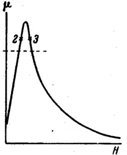 em que B é o valor do campo magnético realmente presente no interior do material (também conhecido como "indução magnética" ou "densidade de fluxo magnético", embora estas nomenclaturas não sejam muito adequadas [Nota 1]) e H é o módulo do "campo magnetizante" .